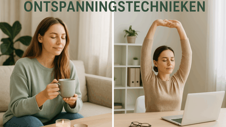 In onze drukke wereld vergeten we vaak om even stil te staan en te ademen. Stress sluipt ongemerkt ons leven binnen en dat kan zich uiten in spanning in je schouders, hoofdpijn of een onrustig gevoel. Gelukkig kun je met eenvoudige ontspanningstechnieken, zowel thuis als op je werkplek, meer balans ervaren. Ontspanning thuis Ontspanning op het werk Tip Creëer een klein ritueel: steek thuis een kaars aan of zet een kop kruidenthee klaar. Op je werk kun je een rustige achtergrondmuziek of een inspirerende quote naast je bureau zetten.